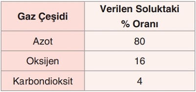 Aşağıdaki tabloda bir memelinin verdiği solukta bulunan bazı gazlar ve bu gazların yüzdeleri verilmiştir.