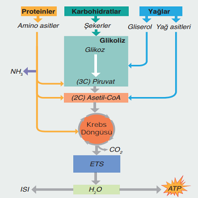 ► Canlılar metabolik faaliyetleri için gerekli olan enerjiyi üç temel besin grubu olan karbohidratlar, yağlar ve proteinlerden sağlar.