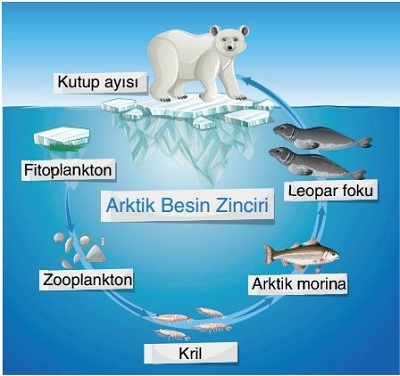 Aşağıda canlılar arasındaki beslenme ilişkilerini gösteren bir arktik besin zinciri verilmiştir.