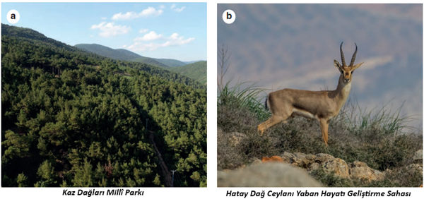 ► Kaz Dağları Millî Parkı ve Hatay Dağ Ceylanı Yaban Hayatı Geliştirme Sahası bu tür uygulamalara örnek gösterilebilir.