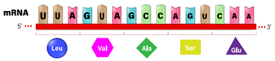 ► mRNA DNA'nın kalıp zincirine anti paralel olduğu için mRNA ipliğinin sentez yönü 5' üssünden → 3' üssüne doğru olur.