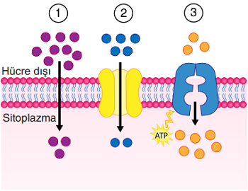 Hücre zarında gerçekleşen üç farklı taşıma olayı aşağıdaki şekilde gösterilmiştir.