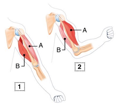 İnsanda kolun hareket etmesini sağlayan A ve B kaslarının iki farklı durumu aşağıda gösterilmiştir.