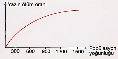 Aşağıdaki grafikte bıldırcın kuşlarının popülasyon yoğunluğuna bağlı olarak yaz mevsimindeki ölüm oranı gösterilmiştir.