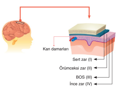 Merkezî sinir sistemini çevreleyen koruyucu yapılar aşağıdaki şekilde gösterilmiştir.