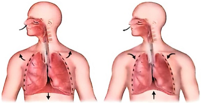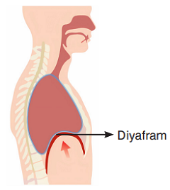 Verilen şekilde bir insanın soluk alma (inspirasyon) ve soluk verme (ekspirasyon) anındaki göğüs ve diyafram hareketleri gösterilmektedir.