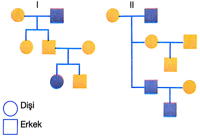 ► Soyağacında kare şeklinde gösterilen bireyler erkekleri, daire şeklinde gösterilen bireyler dişileri temsil etmektedir.
