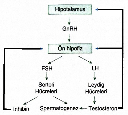 Erkek üreme organının hormonal kontrolü görselde verilmiştir.
