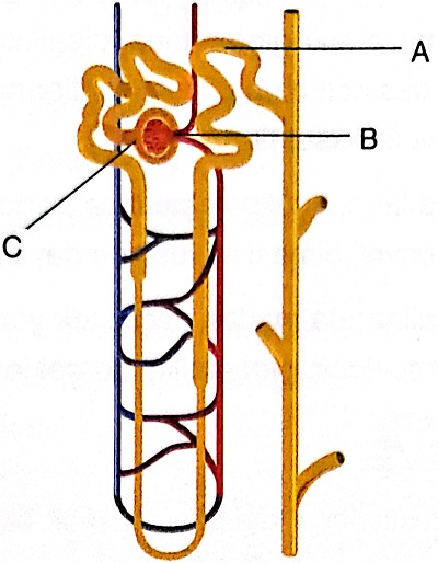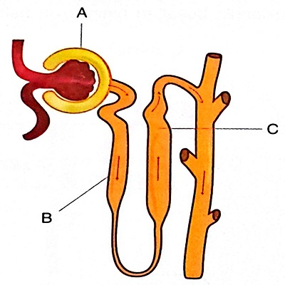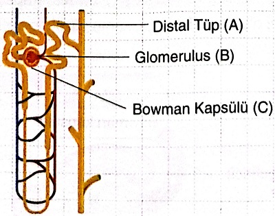 A. A → Glomerulus, B → Distal Tüp, C → Henle KulpuDoğru Cevap İçin Tıklayınız...