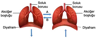Verilen şekilde bir insanın soluk alma (inspirasyon) ve soluk verme (ekspirasyon) anındaki göğüs ve diyafram hareketleri gösterilmektedir.
