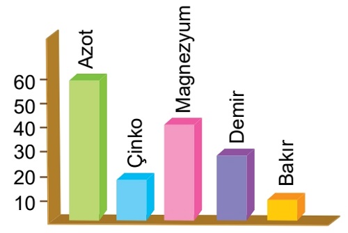 Bitkilerde klorofil sentezinde görev yapan minerallerin topraktaki miktarları yukarıdaki grafikte verilmiştir.