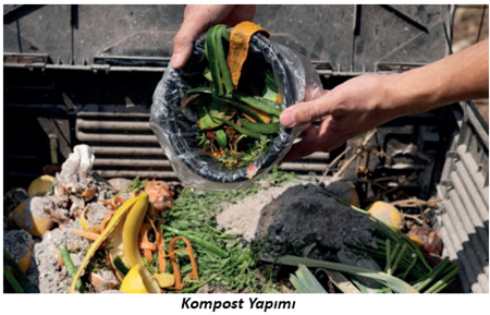 ► Evlerde ve bahçelerde basit kompost kovalarıyla organik atıklardan yararlanmak da mümkündür.