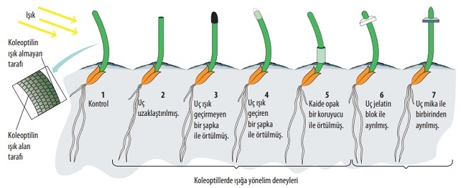 ► Bilim insanları bitkilerin ışığı algılama mekanizmasını çözmek için deneyler yapmışlardır.