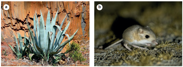 ► Kurak ortama uyum örnekleri: Sarı sabır yapraklarında su depolar. Kanguru sıçanı su içmeden kuru tohumlarla uzun süre yaşayabilir.