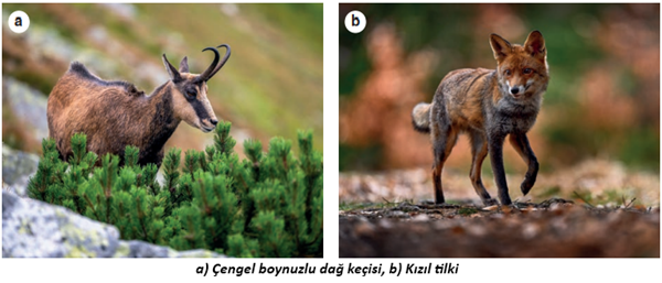 Örnek: Çengel boynuzlu dağ keçisi, kızıl tilki