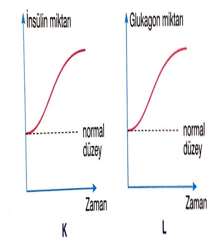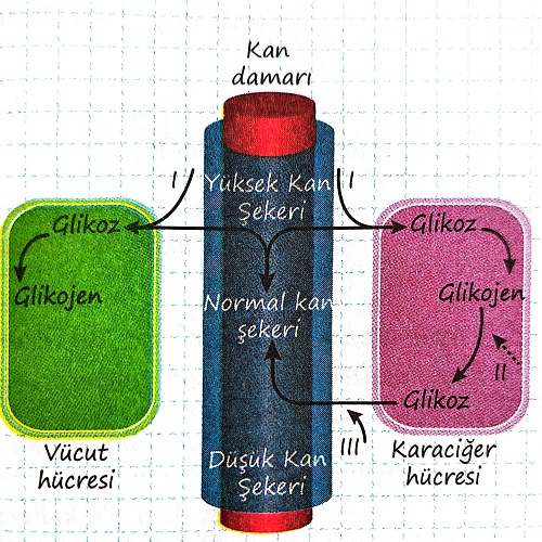 Açıklaması: I → İnsülindir ve pankreastan salgılanır. II → Adrenalindir ve Böbrek üstü bezinin öz (medulla) bölgesinden salgılanır. III → Glukagondur ve pankreastan salgılanır.