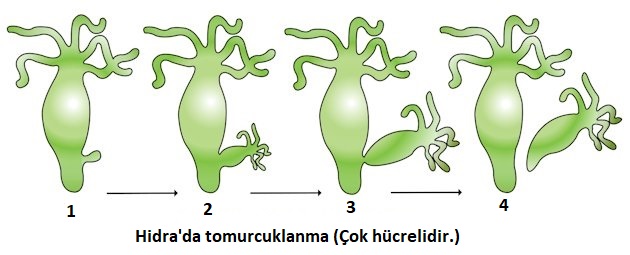 ► Çok hücrelilerde tomurcuklanma ile üreme sürecinde; mitoz ve hücre farklılaşması görülür. Tek hücrelilerde farklılaşma olmaz.