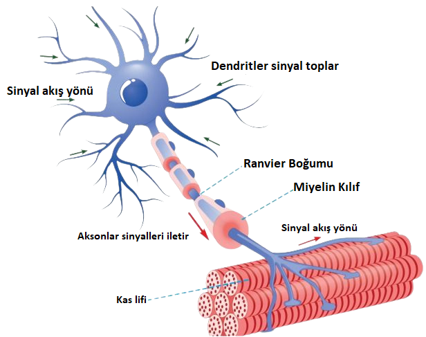 ► Kas hücrelerine bağlı olan nöronlar genellikle miyelinsiz nöronlardır.