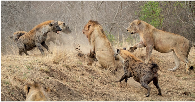 Başka bir dalda etkileşim türleri: avcı–av, konak–parazit, rekabet, insan–yaban hayatı ilişkisi.