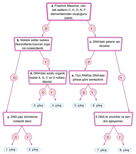 Açıklaması: Hidrojen bağı bulundurma, sadece çekirdekte bulunma DNA'ya, ribozom organeli yapısında bulunma RNA'ya aittir.