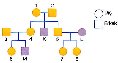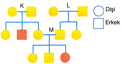 Yukarıdaki soy ağaçlarında L ve M özelliklerinin kalıtımı gösterilmiştir.
