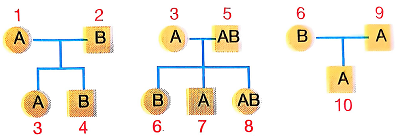 3 (A) ve 5 (AB) → Çocuklar: B, A, AB