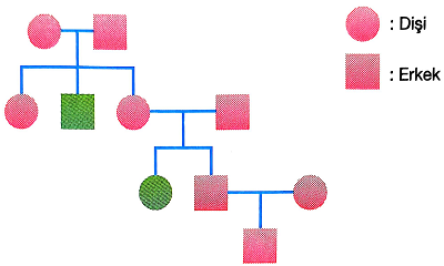 ► Soyağacında kare şeklinde gösterilen bireyler erkekleri, daire şeklinde gösterilen bireyler dişileri temsil etmektedir.
