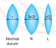 Aşağıda, farklı mesafelerdeki nesnelere bakıldığında insanın göz merceği çapındaki değişim K ve L olarak gösterilmiştir.